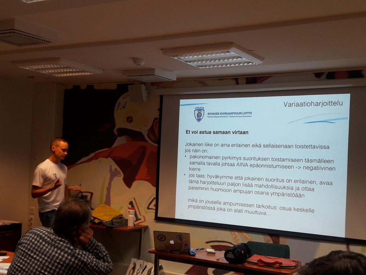Fyysinen/motorinen: Monipuolinen fyysinen oheisharjoittelu, ammuntaharjoitukset tasapainolaudalla, jousen vastusta muuttamalla, väsyneenä