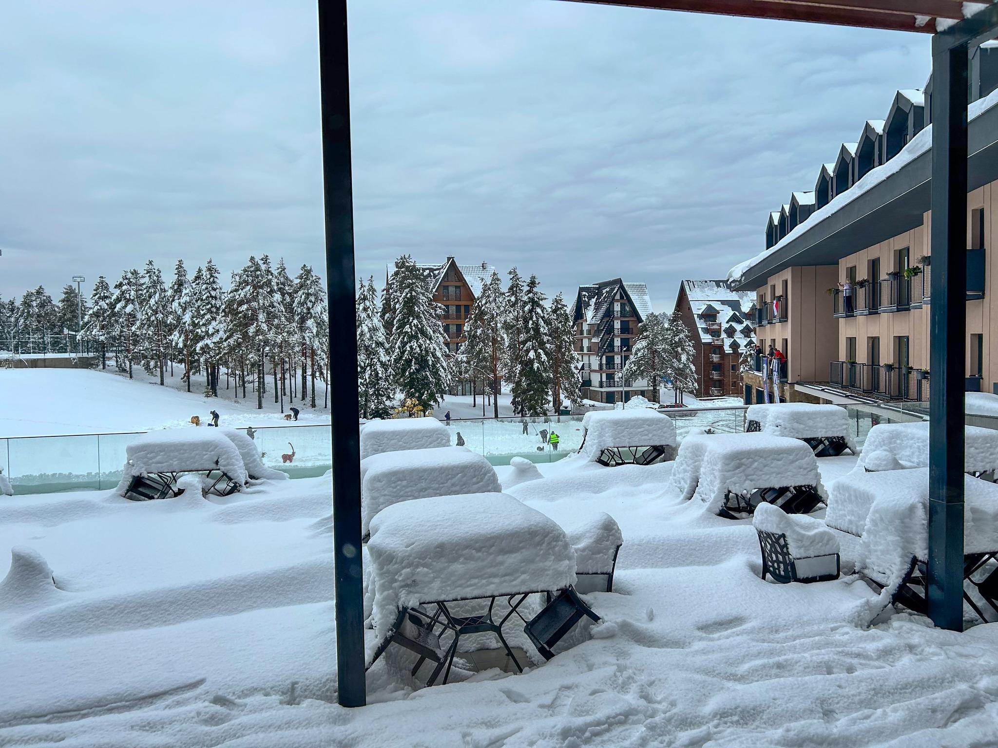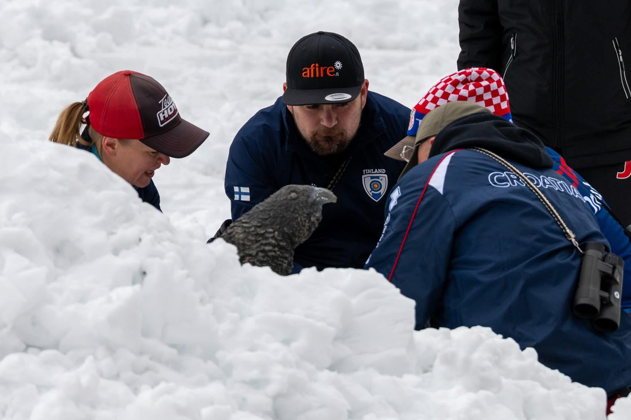 Edellisen viikon helteet muuttuivat Serbian kisapaikalla vuoriston laskettelukeskuksessa ensin vesisateeksi ja sumuksi ja sitten niin rankaksi lumisateeksi, että kilpailu keskeytettiin kahdeksi päiväksi ja neljän päivän loppuottelut ammuttiin kisahotellin viereisellä kentällä viikonlopun aikana. Suomalaisille maasto- ja 3D-ampujille tuttu elementti saattoi olla hieman outo kisajärjestäjille varsinkin, kun alkuperäinen kisapaikka sai käyttökiellon - onneksi - puissa olleen raskaan lumen takia. Varmasti silloin oli ainut mahdollisuus ottaa käyttöön hätäsuunnitelma hotellin vieressä olevan kentän muuttamiseksi kisakentäksi lumilapioiden avulla. Ja sillä mentiin. Kuvista voitte päätellä, miten erikoinen keli olikaan. Oletteko ennen nähneet haita lumikasassa?
