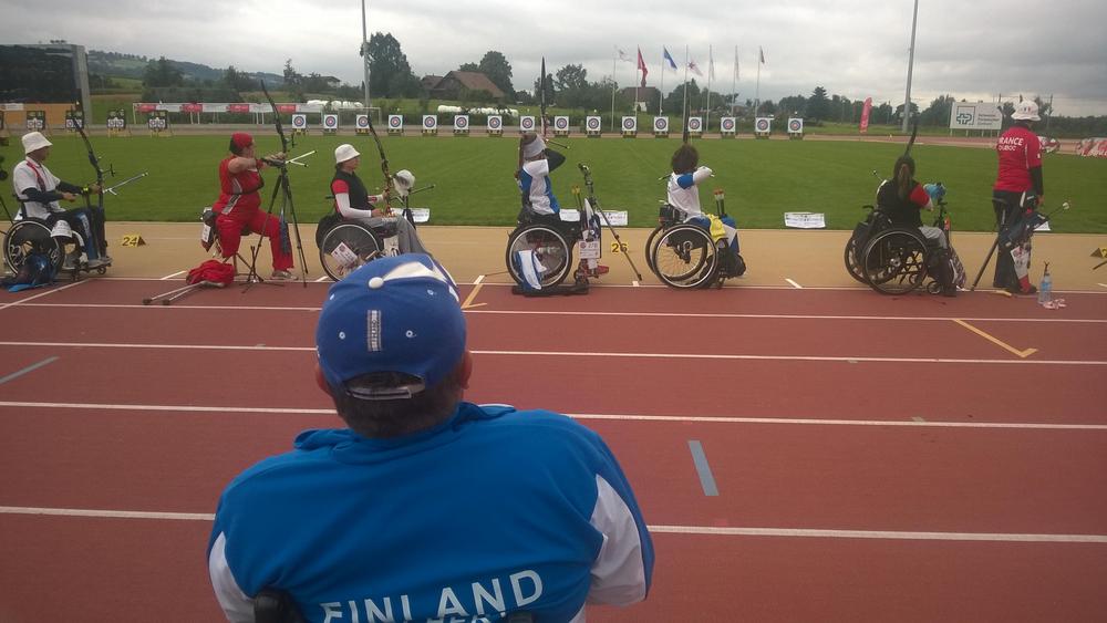 Parajousiammunnan EM-kilpailuissa Notwillissa ammuttiin keskiviikkona toinen osa alkukilpailuista sekä pudotuskilpailuja. Päivä oli suomalaisittain upea! Avoimessa Taljaluokassa Jere Forsberg ampui alkukilpailun voittoon kovalla tuloksella ja Keijo Kallunki oli sijalla 17. Tähtäinjousessa naisten avoimessa luokassa Saana-Maria Sinisalo voitti kaksi ottelua ja oli hienosti lopputuloksissa sijalla 8. Jean-Pierre Antonios Taljajousen W1-luokassa eteni aina loppuotteluun asti!
